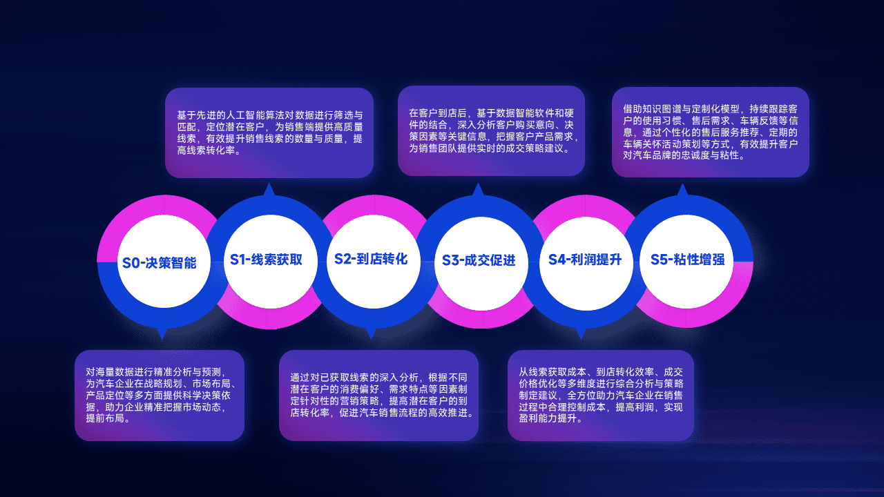 通过拓宽潜在客户来源、、、、优化线索分配并提高到店转化率,,,以增强销售效率。。同时,,,利用线索数据不断优化分析模型,,有效提升转化率,,,,扩大营销影响力。。。